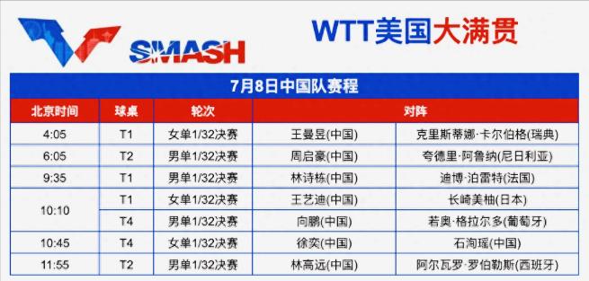 今天國乒共有7場比賽,其中1場內戰,和6場外戰。王曼昱,周啟豪,林詩棟,林高遠,王藝迪,向鵬,徐奕,林高遠先后登場。今日國乒賽程如下:
