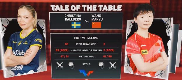 首場比賽是由世界排名第2的王曼昱對陣世界排名第83位的瑞典選手卡爾伯格。這是雙方職業生涯的首次交手。