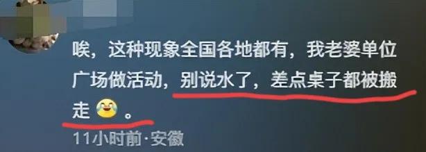 這事在網上炸了鍋,有人評論說自家老婆單位搞活動,連桌子差點都被搬走。