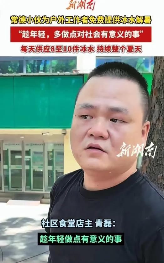 其實愛心冷飲這事各地都在做,湖南常德有家面館老板,每天準備七八箱礦泉水放門口,專門給干體力活的。