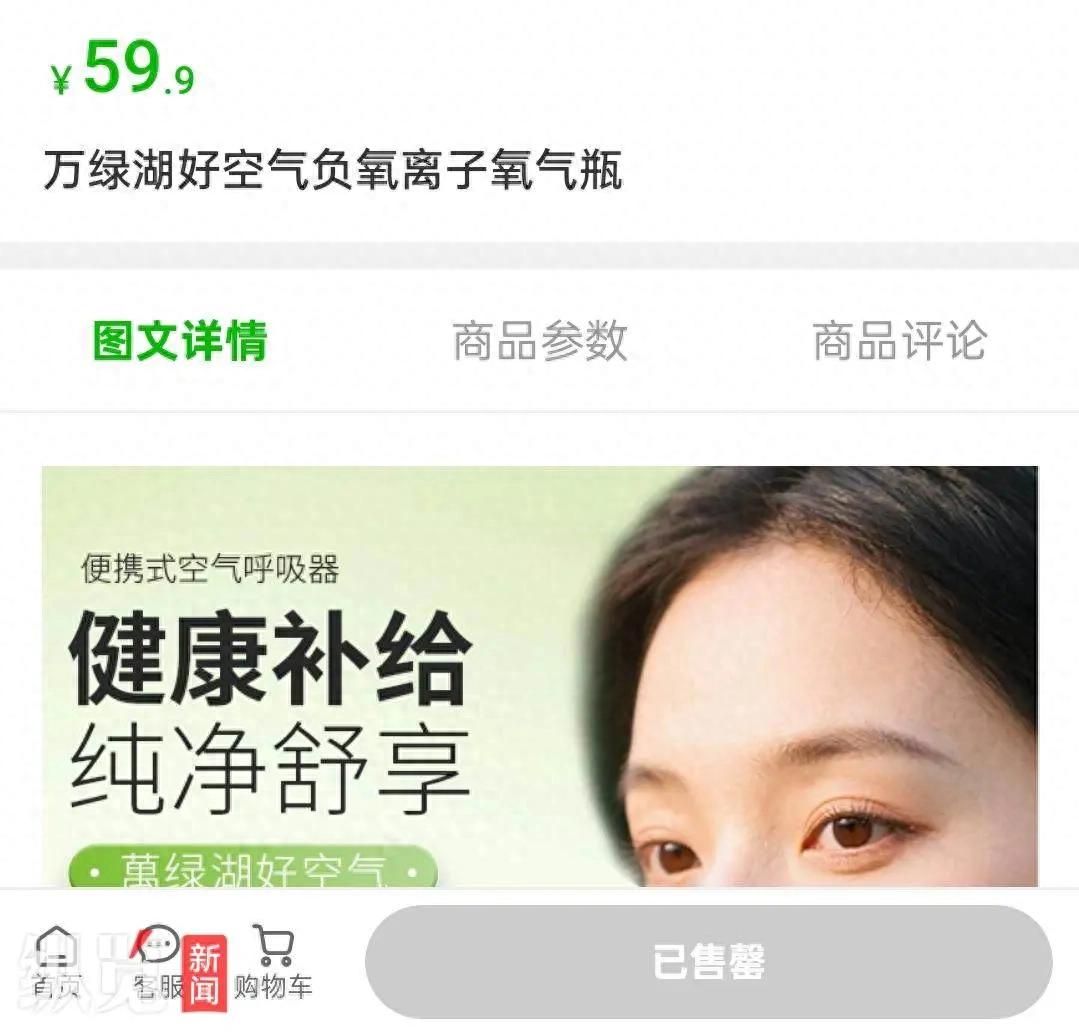 據(jù)萬綠湖景區(qū)“空氣罐頭”經(jīng)銷商接受媒體采訪時表示,該產(chǎn)品發(fā)布后已經(jīng)被搶空,產(chǎn)品主要是讓大家感受萬綠湖的空氣,有的地方空氣不是很好,可以多吸吸我們這兒的清新空氣。7月16日,記者在售賣該產(chǎn)品的店鋪看到,這款名為“萬綠湖好空氣負(fù)氧離子氧氣瓶”的產(chǎn)品售價59.9元,且已售罄。店鋪工作人員稱,目前空氣罐頭還是缺貨狀態(tài),會不會補貨并不清楚。