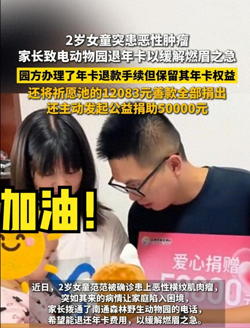 兩歲女童不幸患上惡性腫瘤,可憐天下父母心,在花光所有積蓄之后,無奈只能退掉動物園的年卡貼補家用。