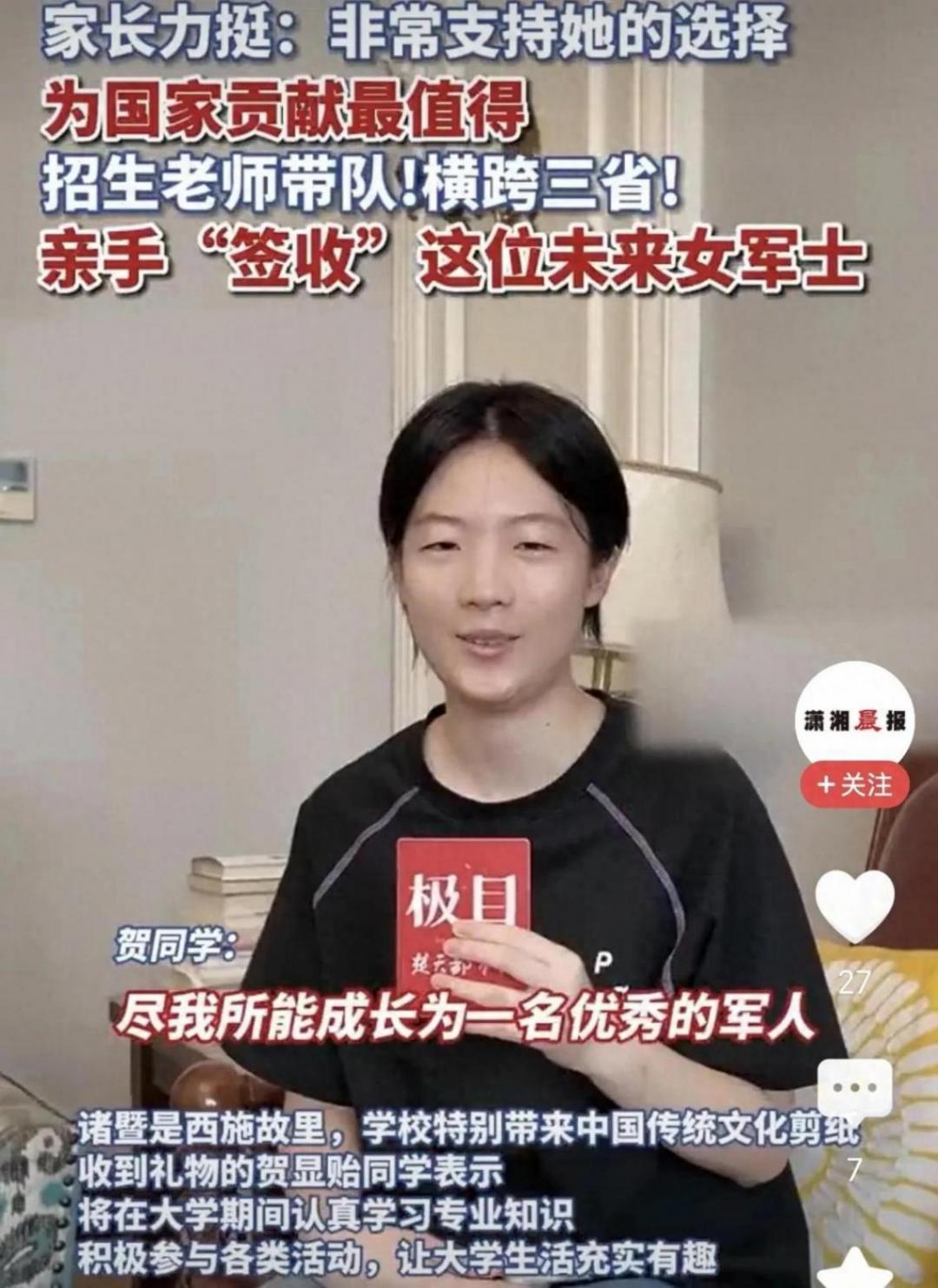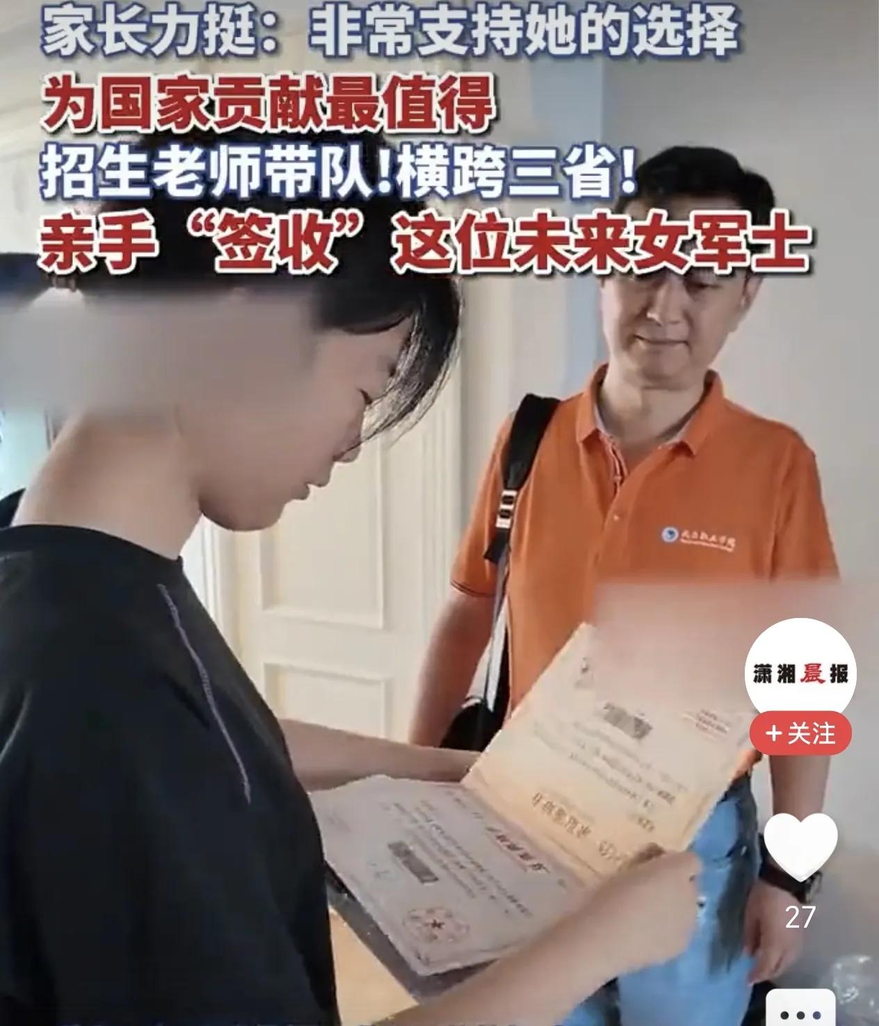 浙江的這個女孩是一個非常有想法的女孩子,她考604分,正常來說是可以報考雙一流的大學的,但是她卻放棄了這個選擇,而選擇了武昌職業學院的一個定向軍士培養的學校,而她的媽媽也表示非常的支持孩子,現在她也收到了錄取通知書,收到通知書的那一刻,她眼中有光,覺得是非常正確的選擇,她表示以后會好好學習,為國家貢獻自己的一份力量