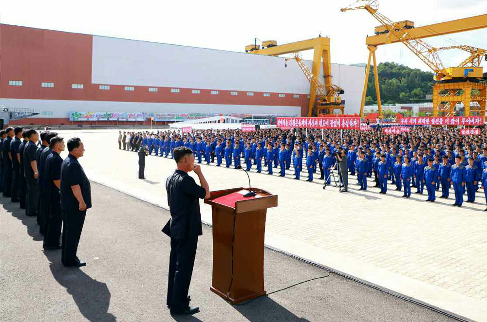 據悉,為建造5000噸“崔賢”級驅逐艦3號,南浦造船廠于21日在當地舉行職工動員會。