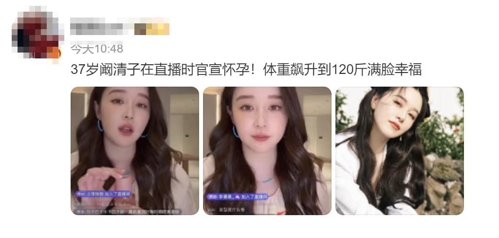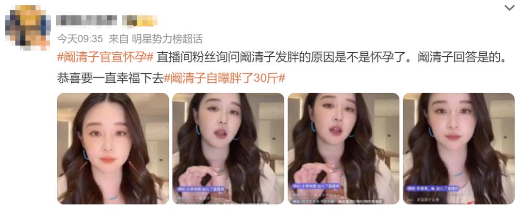 7月23日,闞清子疑似在直播中回應了粉絲關于她傳聞的提問,直播中,粉絲不斷詢問闞清子發胖的原因是不是懷孕了,闞清子回答是的。