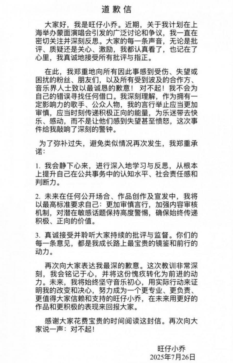 現在隨著汪、張唱權之爭,輿論發酵如此之大,旺仔小喬突然出來道歉,想來應該是受到各方壓力了吧。