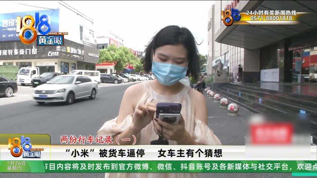 黃女士開了輛小米su7,說是前些天在路上被一輛貨車逼停。記者進行了核實,雙方都拿出了行車記錄儀。