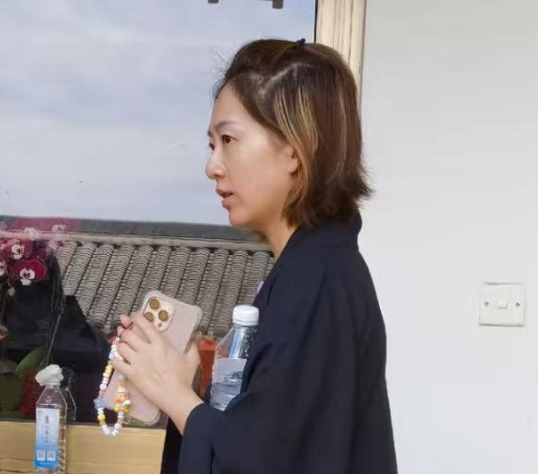 但她似乎不想被人拍到,在發現有人在拍攝的時候,她用手示意對方不要拍。但是對方還是把她拍下來了。