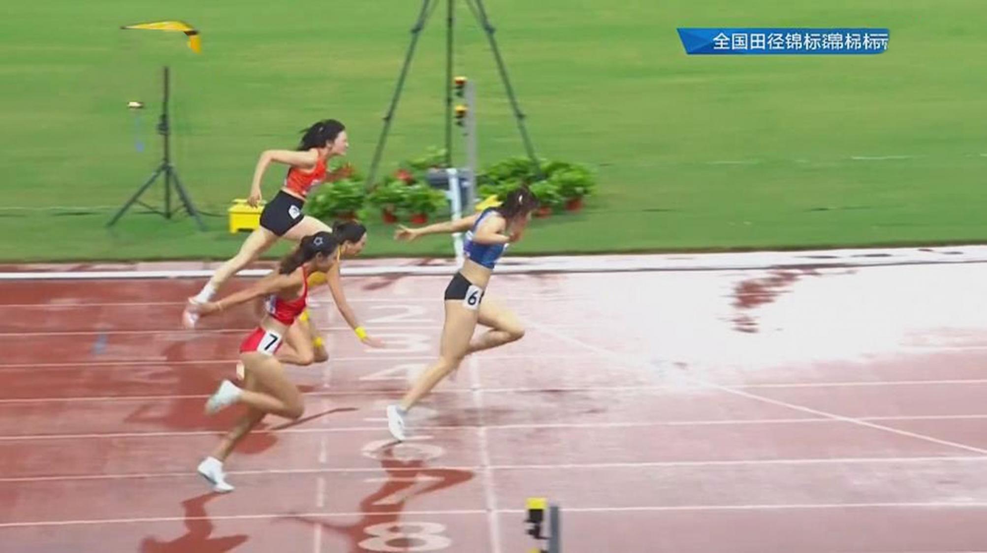 林雨薇在第4道,劉景陽在第5道,吳艷妮第6道,夏思凝第8道。比賽一開始,劉景陽發揮出色,起步很快,林雨薇出發啟動速度也很快,都領先于吳艷妮。