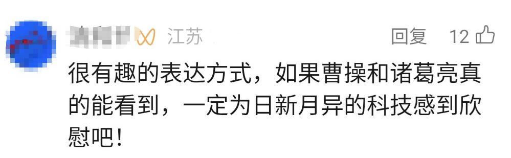 有網友留言“感覺能以另一種方式和古人對話是件很有意思的事情”“很有趣的表達方式,如果曹操和諸葛亮真的能看到,一定為日新月異的科技感到欣慰吧!”