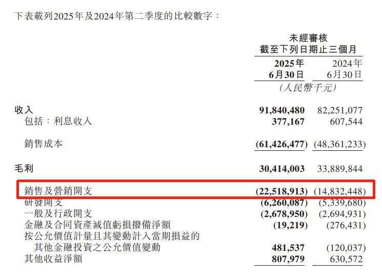 銷售及營銷開支出的激增,也體現了外賣大戰的燒錢力度。美團二季度在銷售及營銷開支上的支出,比去年同期多花了77億,同比增長51.5%。財報稱,這部分開支的增長主要是應對外賣和即時零售業務的激烈競爭。