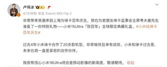 今年7月,盧偉冰曾發(fā)文稱:“我很有信心小米 16 Ultra 將會是移動影像的新高度,敬請期待。”從目前的情況來看,小米 16 Ultra 預(yù)計將改名小米 17 Ultra。