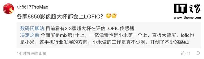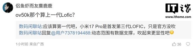 后續(xù)有用戶(hù)在評(píng)論區(qū)詢(xún)問(wèn):“ov50k 哪個(gè)算上一代 Lofic?”,博主回復(fù)道:“應(yīng)該算第一代吧,小米 17 Pro 是首發(fā)第三代 LOFIC,只是官方?jīng)]吹”;另一名用戶(hù)則詢(xún)問(wèn)道:“各家 8850 影像超大杯都會(huì)上 LOFIC?”,博主則回復(fù)道:“目前看有 2-3 家超大杯在評(píng)估 LOFIC 傳感器”。