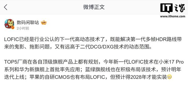 10 月 10 日消息,博主 @數(shù)碼閑聊站 今天在微博透露,LOFIC 已成為行業(yè)公認(rèn)的下一代高動(dòng)態(tài)技術(shù)。
