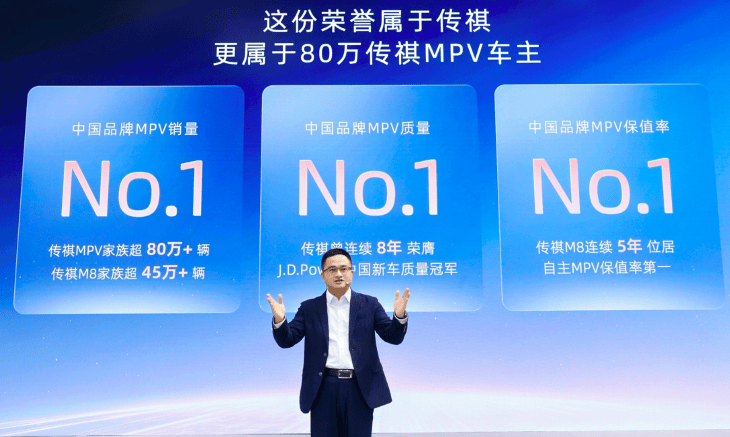 傳祺M8系列作為華系MPV的標(biāo)桿車型,曾創(chuàng)造累計超75萬輛的銷量成績,市占率連續(xù)3年位居中高端MPV前三,更成為曹德旺、蘇炳添等名人的優(yōu)選座駕。