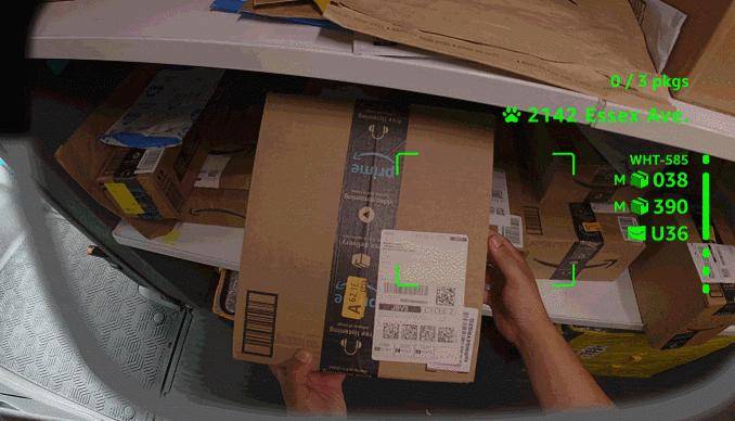 亞馬遜寫道:“我們預計未來版本的眼鏡將實現實時缺陷檢測功能, 例如當司機誤將包裹投遞至與包裹上門牌號不符的客戶門前時,眼鏡能及時提醒司機;還能檢測昏暗光線等危險環境并自動調節鏡片,提醒快遞員院子里有大型寵物等更多功能。”