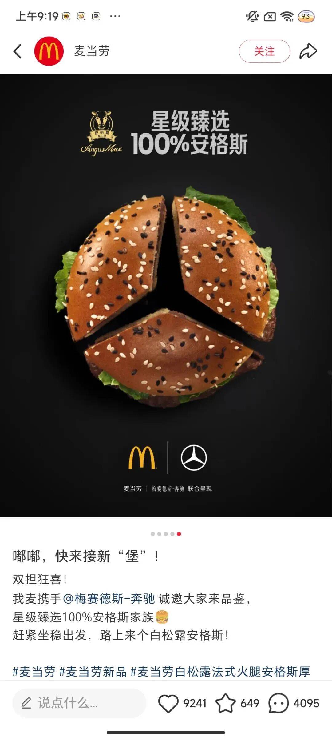 最近,麥當勞與奔馳的跨界聯名強勢刷屏,麥當勞與奔馳的跨界聯動剛官宣,就憑一句“嘟嘟,快來接新堡”把全網磕到上頭。