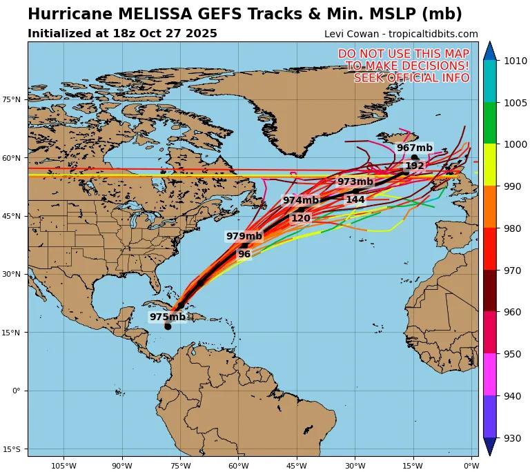 未來“梅麗莎”將轉向北移動,可能在北京時間28日夜間到29日凌晨登陸牙買加,之后在29日下午到晚上,再次登陸古巴東部。從過程降水量看,牙買加和古巴東部,可達200-500毫米,局地超500毫米。并且颶風中心附近陣風超220公里每小時,17級以上,風雨強度可能破紀錄。
