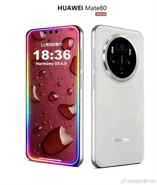 華為 Mate 80 最新渲染圖(來源:@長安少俠 TOK)
