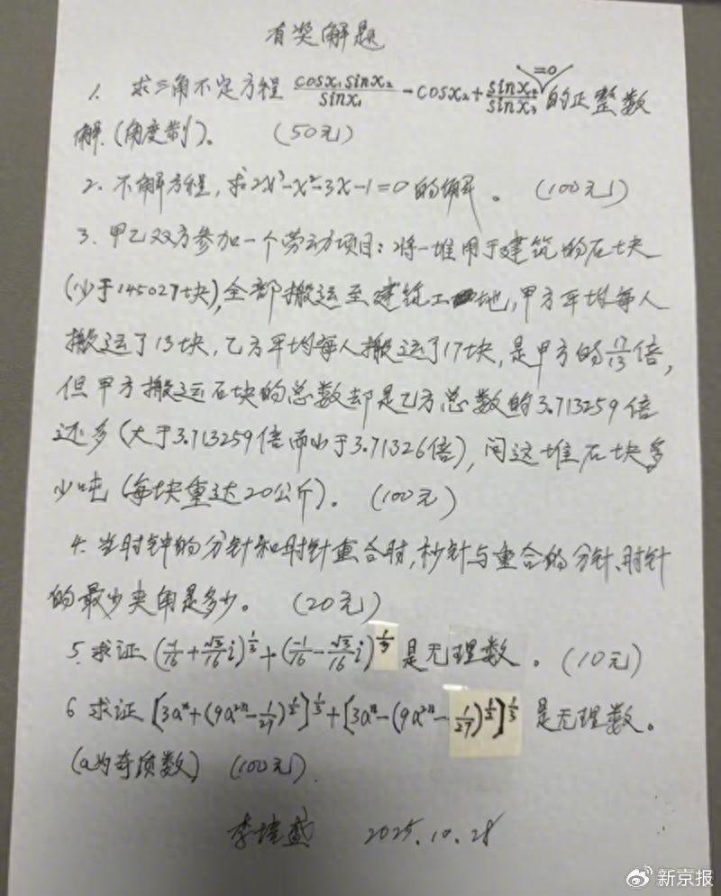 11月1日,小張將內容整理成視頻,發布在社交平臺上。這個有些浪漫和執著的故事,很快沖上平臺熱搜,吸引了超過2000萬人觀看。人們好奇,一個身處陋室的老人,是如何默默堅持鉆研數學長達半個世紀。