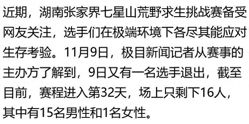 現在的綜藝啊真是越來越看不懂了!說好的荒野求生挑戰賽呢?五十個人浩浩蕩蕩出發,結果沒到半個月就只剩十六個還在硬撐。