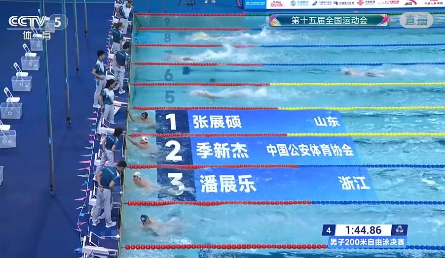 11月12日,全運會男子200米自由泳決賽,張展碩贏得全運會男子200米自由泳冠軍,成績為1分44秒86。季新杰獲得亞軍,潘展樂拿到銅牌。