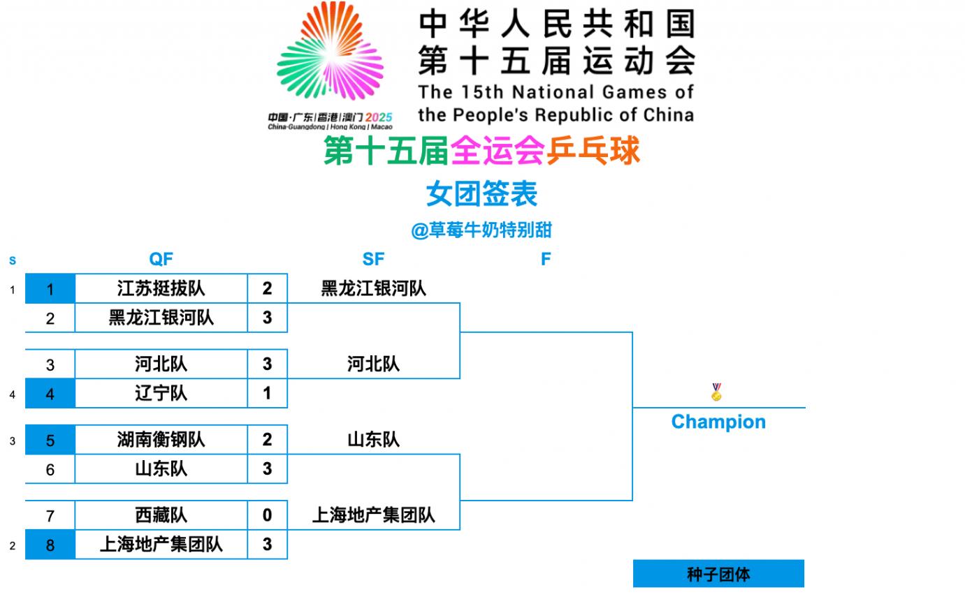 黑龍江隊3-2江蘇隊,黑龍江隊憑借核心主力王曼昱獨砍2分,以及小將范姝涵的一分3-2戰勝擁有蒯曼、石洵瑤、錢天一三位國乒名將的江蘇隊。江蘇隊的二單石洵瑤發揮不佳,也是江蘇隊出局的主要原因,石洵瑤近期狀態也是非常不錯的,第一盤搭檔錢天一3-0戰勝黑龍江隊的張瑞/范姝涵,第二盤蒯曼迎戰王曼昱,王曼昱拿下女單冠軍后氣勢如虹,雖然今年蒯曼曾兩次戰勝王曼昱,不過王曼昱最近球技大漲,而且有了許多新的技戰術,王曼昱11-9/11-4/11-7,非常輕松戰勝蒯曼,扳平大比分,隨后第三盤,也是決定勝負的一盤,石洵瑤1-3不敵范姝涵,第四盤蒯曼3-0橫掃張瑞,第五盤,王曼昱3-0輕松戰勝錢天一,也是本次全運會第二次戰勝錢天一了。