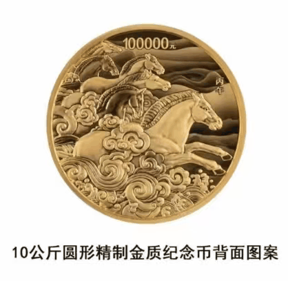 最讓人震撼的得是那枚10公斤的圓形金質紀念幣,背面是群馬奔騰的造型,襯著祥云、山水紋,光想想就覺得氣勢十足。這枚幣含純金10公斤,最大發行量才18枚,妥妥的收藏界頂流,普通人大概率只能看看圖片過眼癮,但不得不說,這種大規格紀念幣,光是材質和發行量就決定了它的稀缺性,以后絕對是收藏市場上的硬通貨。