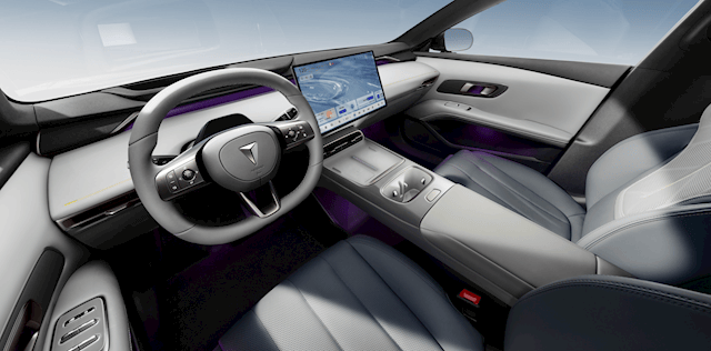 內飾方面,深藍L06同樣采用了簡潔的設計和布局,并提供“舒俱來紫”、“煙晶霧灰”、“月光石白”這3款內飾顏色可選。座艙內和儀表臺均采用了撞色刺繡工藝點綴,并提供90%內飾軟包覆蓋率,座椅采用環保級PU柔性表皮。