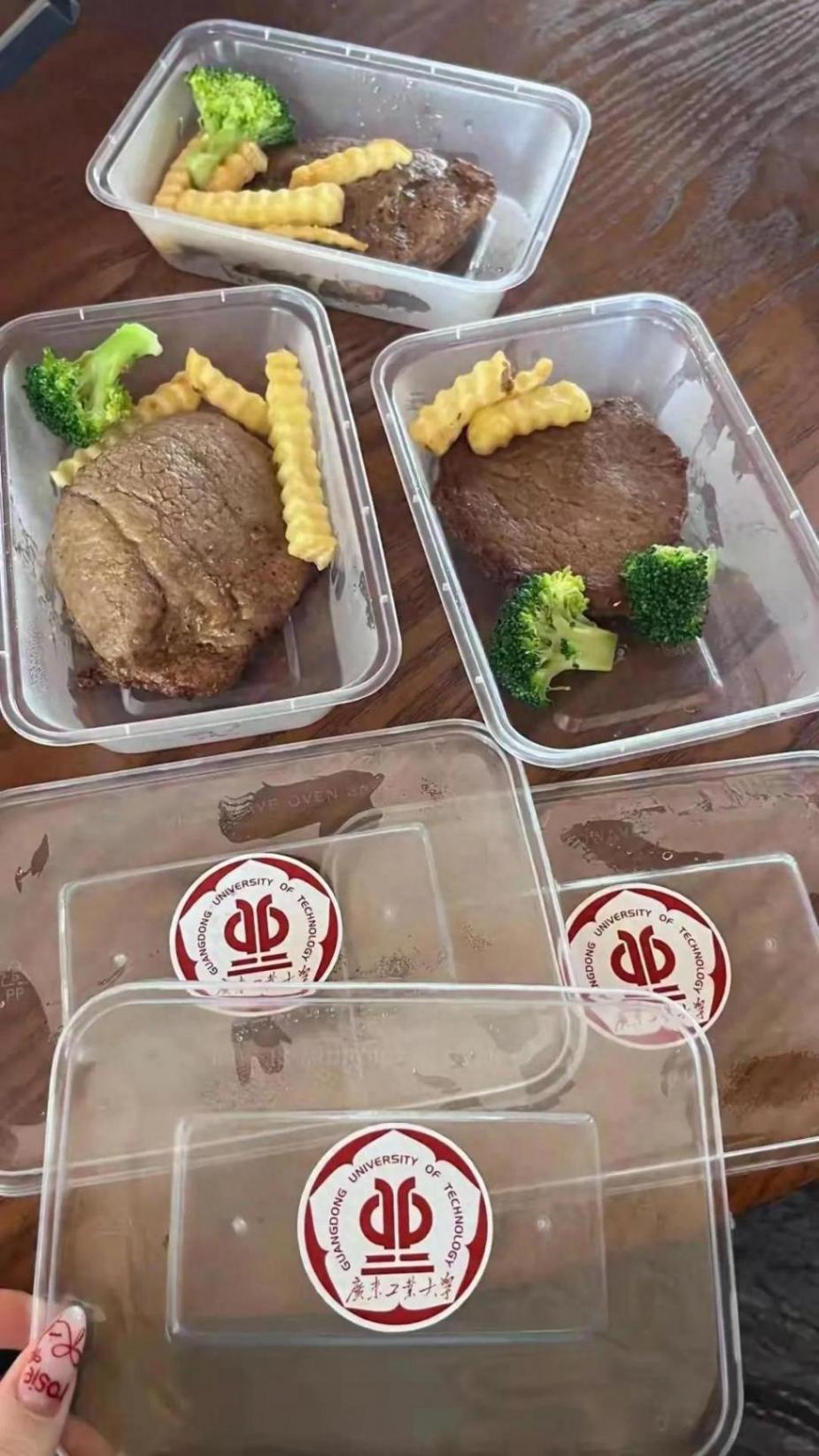 他分享的圖片顯示,每份牛扒都用塑料盒精心包裝,搭配的薯?xiàng)l和西蘭花色彩分明,令人食欲大增。