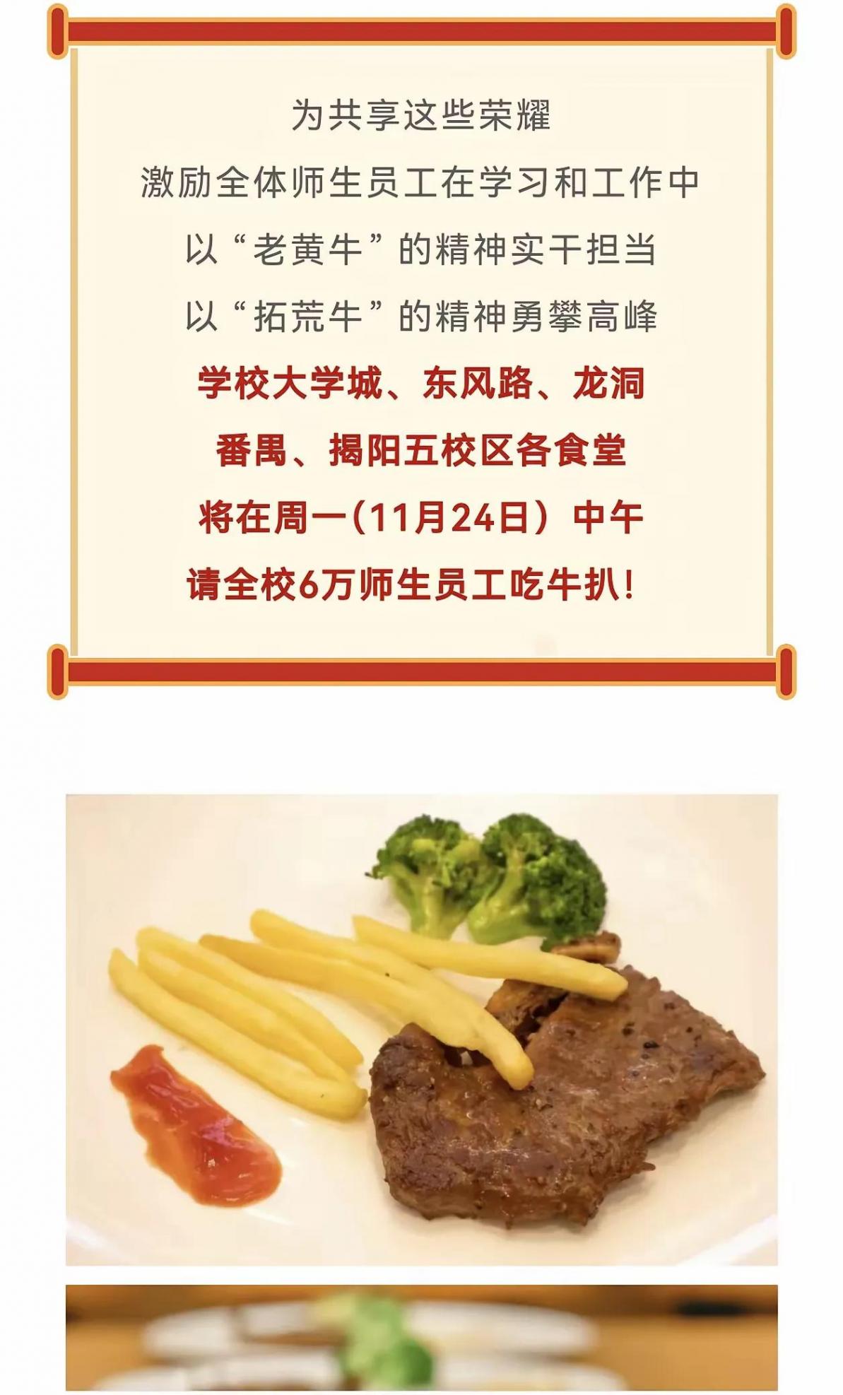 把慶功宴開去食堂!6萬師生免費(fèi)牛扒,網(wǎng)友:這波操作抄都抄不來