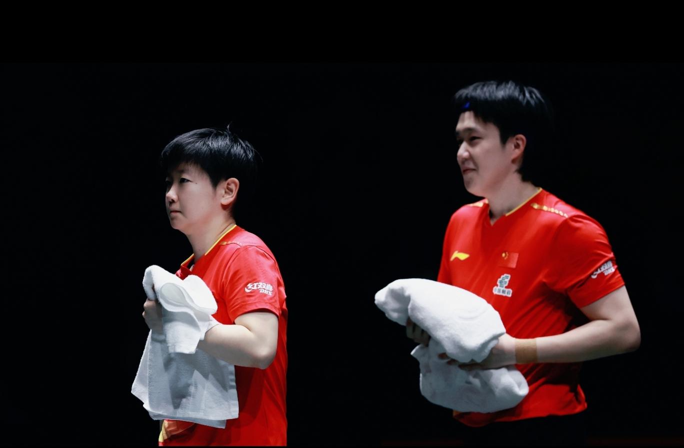 來看一下今天的比賽,國乒在第一階段第一場比賽中,使用了孫穎莎+王楚欽的混雙組合,此后兩場均為蒯曼+林詩棟的混雙組合。在第一階段全勝后,來到第二階段,今天國乒第一盤混雙,繼續啟用“莎頭”組合。