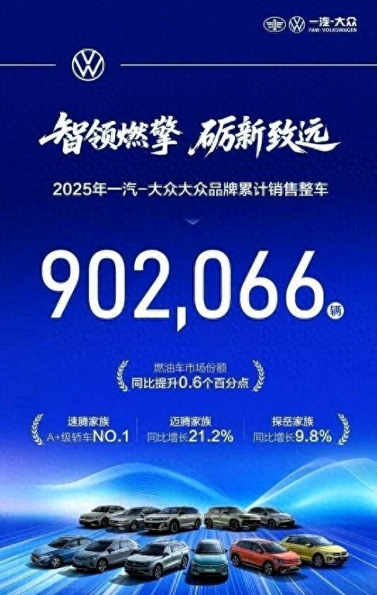 2025年新能源車市占比已達四成,一汽大眾卻逆勢賣出158.7萬輛燃油車,市場份額不降反升0.9%。在電動化浪潮席卷全國的背景下,這一數據顯得格外刺眼。速騰年銷超25萬臺,邁騰銷量增長兩成以上,探岳穩守18萬臺關口,連小眾車型高爾夫也交出3.5萬臺成績單。燃油車未被時代拋棄,反而在大眾手中煥發新生。