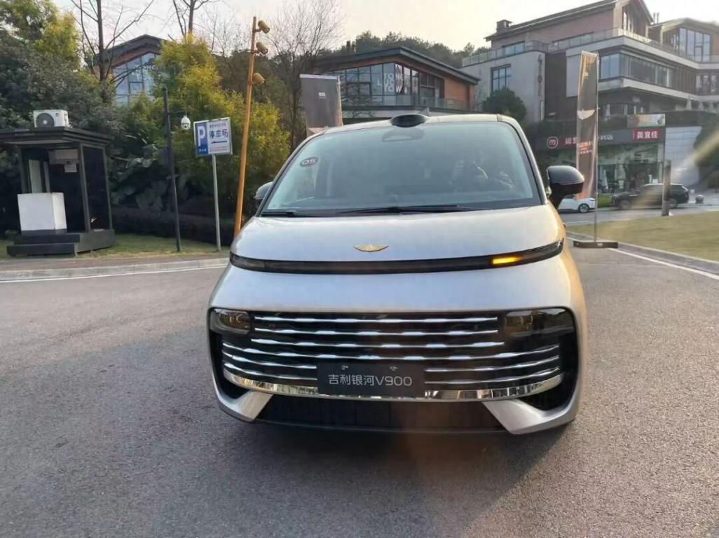 豪華大氣,是吉利銀河V900給人的第一印象。該車外觀上延續翼真L380設計語言,前臉大面積采用銀色線陣格柵,搭配貫穿式燈組和分體式遠近光燈,顯得簡潔且富有層次感,再加上24k曜金天馬車標的襯托,讓這款車的豪華氣場十足。