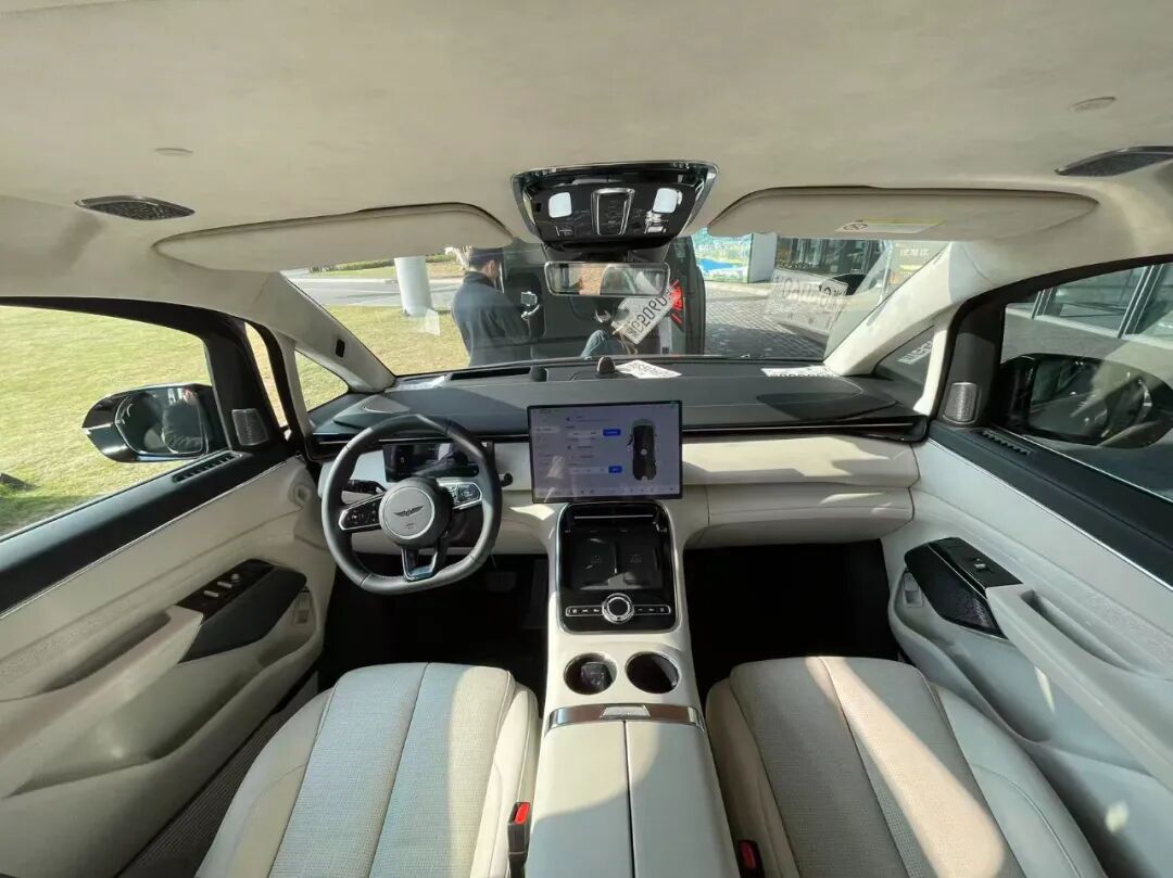 進入車內,銀河V900更是內有乾坤。首先,小尺寸液晶儀表、HUD抬頭數字顯示、懸浮式中控大屏以及第二排17.3英寸吸頂屏、扶手觸控屏等配置,帶來滿滿的科技感。再加上大面積麂皮包覆、電子懷擋、雙50W手機無線快充等,高級感給到位了。