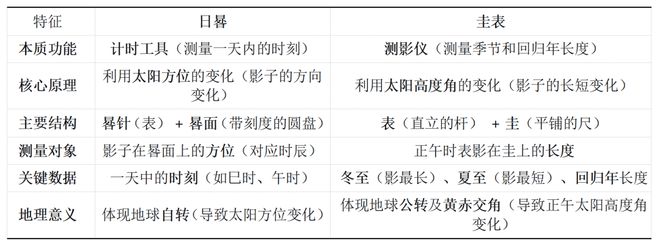 3.地理核心:兩者都以太陽視運動為觀測對象,實質反映了地球運動(自轉與公轉)的基本規律,是理解“時間”、“季節”地理成因的生動模型。