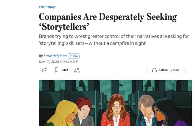 于是,“Storyteller(講故事的人)”這個古老的職位,被賦予了新的溢價?!度A爾街日報》發現,從2024年到2025年,LinkedIn上包含這個關鍵詞的崗位數量翻了一番。
